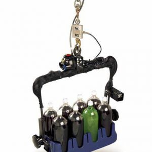 SEGURIDAD: Una vez que las abrazaderas de elevación verticales están completamente enganchadas, un enclavamiento de seguridad (indicado por un manómetro de aire y una señal verde) evita la liberación accidental de la carga.