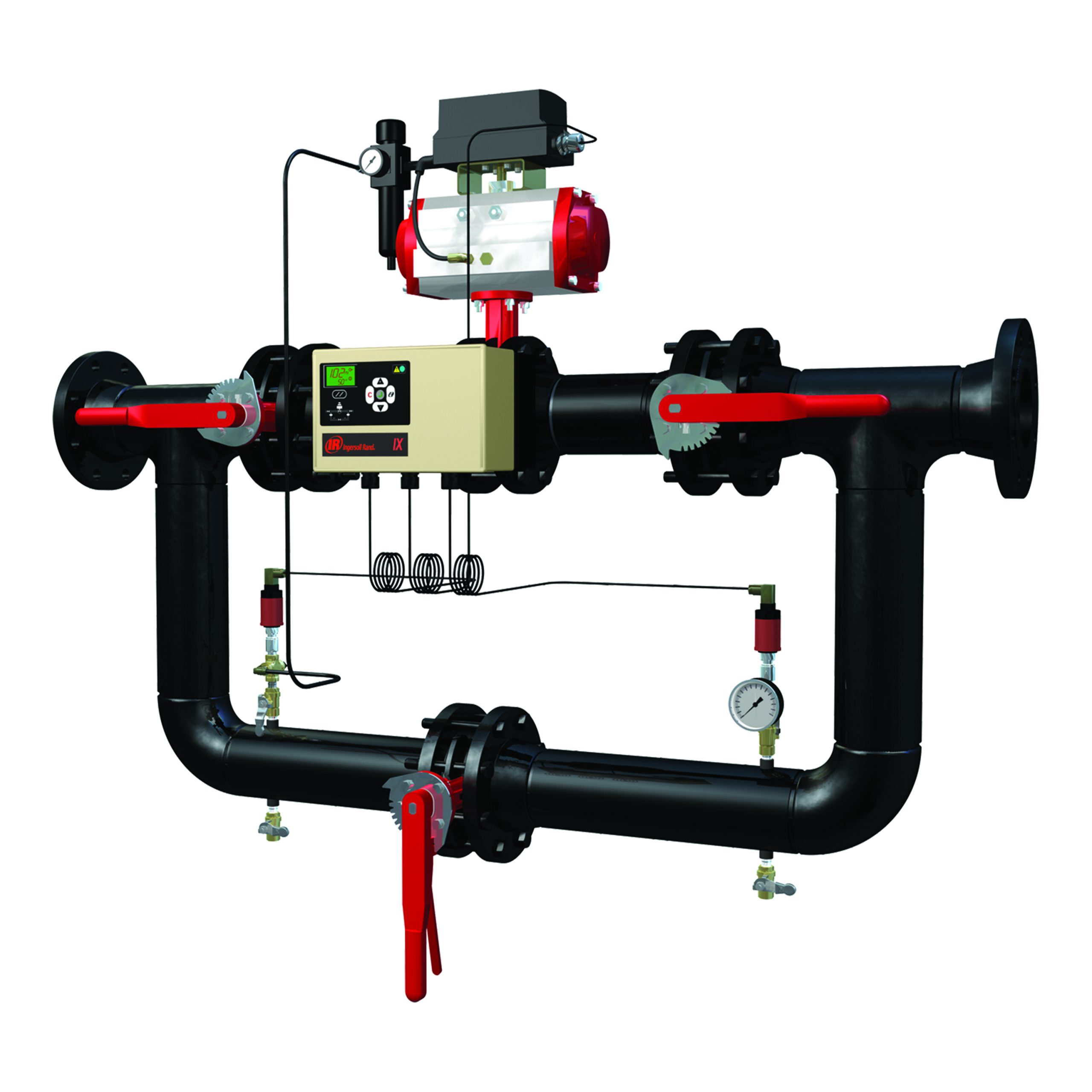 Entre un 20 y un 60% de la energía utilizada para hacer funcionar los sistemas de aire comprimido se desperdicia. Los sistemas de aire que funcionan a presiones elevadas son uno de los principales causantes de este mal aprovechamiento. Es conocido el hecho que el aire comprimido almacenado a altas presiones puede proporcionar un efecto de capacitancia para demandas repentinas de volumen alto. Se conoce menos el hecho de que una mayor presión de almacenamiento, que no es controlada ni administrada adecuadamente, resultará no solo en un consumo de energía adicional para comprimir a mayor presión (0,5% de energía por cada 1% de aumento de presión), sino también un consumo de aire significativamente mayor por parte de todos los usuarios de aire comprimido (en algunos casos hasta 12% más). La aplicación del control IntelliFlow de Ingersoll Rand utiliza en forma efectiva el almacenamiento del sistema para compensar el uso del aire aleatorio, alto y evita la necesidad de aumentar la presión total del sistema. Similarmente, el control IntelliFlow también elimina la necesidad de realizar la carga de los compresores o de realizar un ciclo corto debido al mismo uso de aire alto, aleatorio.